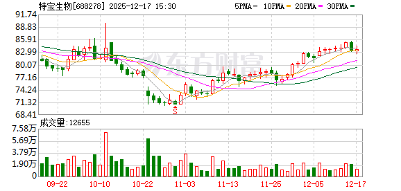 特宝生物12月17日大宗交易平台出现一笔成交,成交量3.24万股,成交金额270.67万元,大宗交易成交价为83.54元。该笔交易的买方营业部为国泰海通证券股份有限公司总部,卖方营业部为广发证券股份有限公司厦门湖滨南路证券营业部。