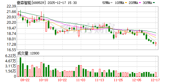证券时报·数据宝统计显示,豪森智能今日收盘价为17.52元,上涨0.86%,日换手率为0.76%,成交额为2216.70万元,全天主力资金净流入148.16万元,近5日该股累计下跌5.35%,近5日资金合计净流出470.86万元。