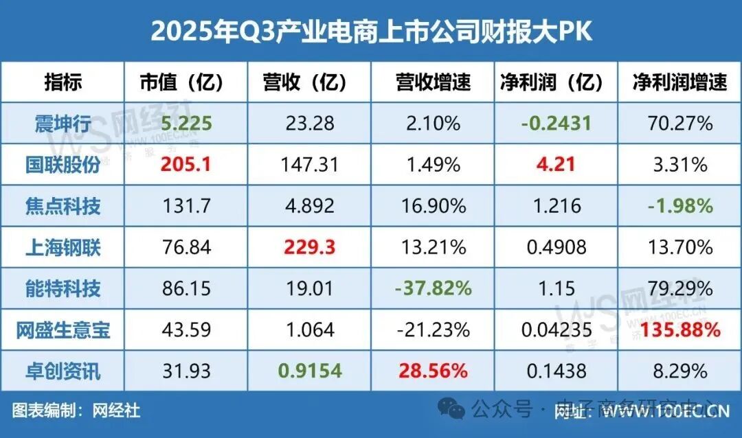 导读:近日,产业电商上市公司中,国联股份(维权)、焦点科技、上海钢联等7家公司陆续发布三季报,几家公司业绩呈现“冰火两重天”的态势,这反映出哪些“信号”?对此,网经社电子商务研究中心给予解读。