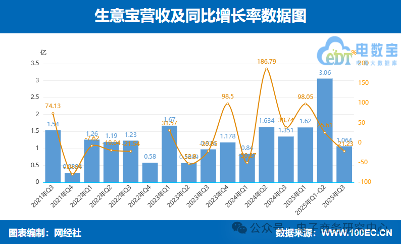 网盛生意宝2025年三季度营业收入为1.064亿元,较上年同期的1.351亿元下降了22.1%,收入下降的主要原因是公司正在进行战略调整,主动缩减了供应链服务业务的规模,从而导致该项业务收入减少。