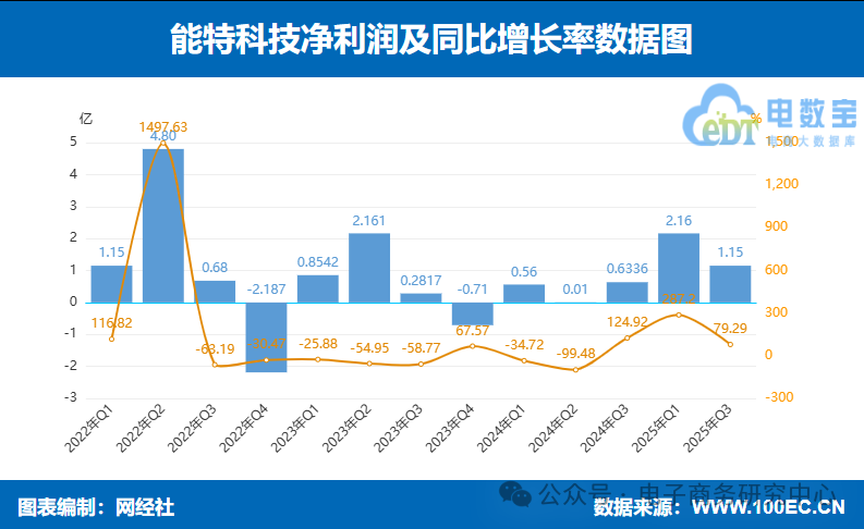 能特科技:2025年三季度归母净利润实现强劲增长,达到1.15亿元,同比增长79.29%。公司在营收规模收缩的背景下,盈利能力显著提升,展现出优异的成本控制能力或业务结构优化成效。