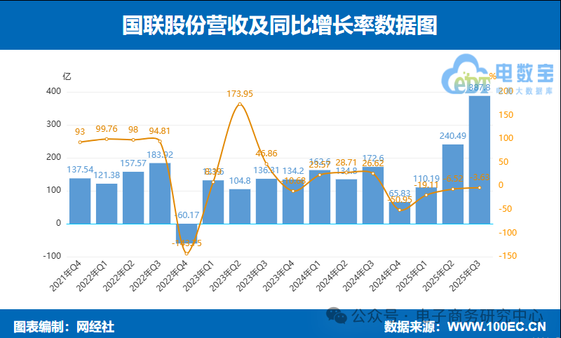 11月5日,国联股份2025年前三季度实现营业总收入387.8亿元,同比下降3.63%,从单季度表现来看,公司营收147.31亿元,同比增长1.49%