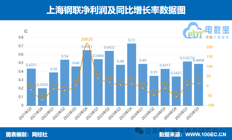 上海钢联:2025年三季度实现营业收入229.30亿元,同比增长13.21%;归母净利润为0.49亿元,同比增长13.70%。公司营收规模在产业电商上市公司中位居前列,且保持了营收与利润的同步双位数增长,展现出良好的业务韧性与规模效应。