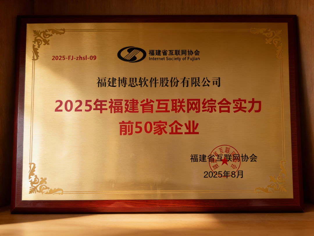 12月18日,2025年福建省互联网综合实力前50家企业发布会在福州召开,会上“2025年福建省互联网综合实力前50家企业”榜单正式揭晓。博思软件凭借在市场竞争力、技术创新力、可持续发展力等多维度优异表现,连续六年荣耀上榜,位列第9名,排名较去年提升25位,彰显了其在互联网领域的稳固竞争力与行业标杆价值。