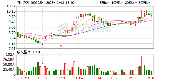 今年以来,四川路桥整体业绩表现良好。财报显示,今年前三季度,四川路桥实现营收732.81亿元,同比增长1.95%;归母净利润53.00亿元,同比增长11.04%;单三季度归母净利润25.20亿元,同比增长59.72%。
