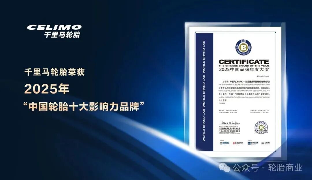 12月17日,由世界品牌实验室主办的2025年“世界经理人峰会”成功举办。峰会期间,备受瞩目的第二十二届“中国品牌年度大奖”榜单正式揭晓。通用股份旗下千里马轮胎,凭借深厚的综合实力与卓越的创新势能,连续第七年荣膺“中国轮胎十大影响力品牌”。