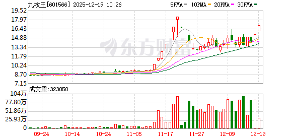 九牧王再度涨停,6个交易日内录得4个涨停,累计涨幅为24.30%,累计换手率为73.59%。截至9:34,该股今日成交量3060.12万股,成交金额5.08亿元,换手率5.33%。最新A股总市值达97.57亿元。