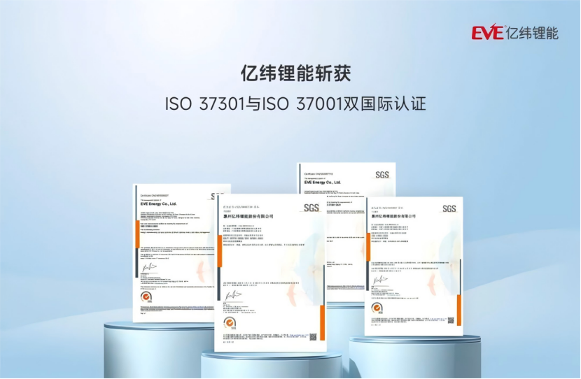 2025年11月,惠州亿纬锂能(维权)股份有限公司(以下简称“亿纬锂能”)顺利通过ISO 37301:2021/GB/T 35770-2022合规管理体系及ISO 37001:2025反贿赂管理体系认证,成为国内锂电池行业首家同步获此三项标准认证的企业。