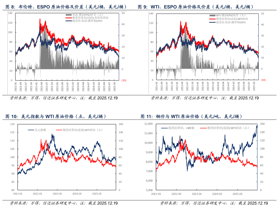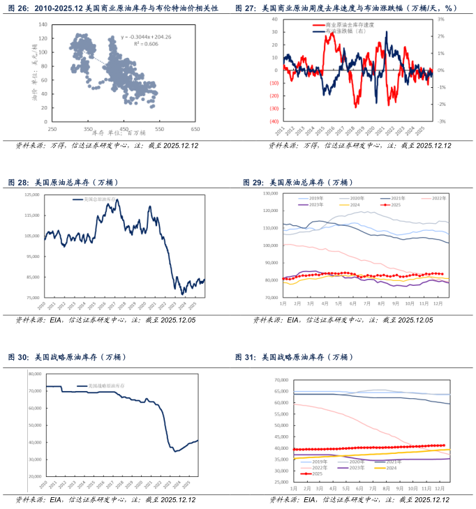 本文源自报告:《原油周报:地缘溢价持续回吐,油价震荡下跌》 | 发布时间:2025年12月21日 | 发布报告机构:信达证券研究开发中心 | 报告作者:刘红光,石化行业联席首席分析师,S1500525060002;胡晓艺,石化行业分析师,S1500524070003。