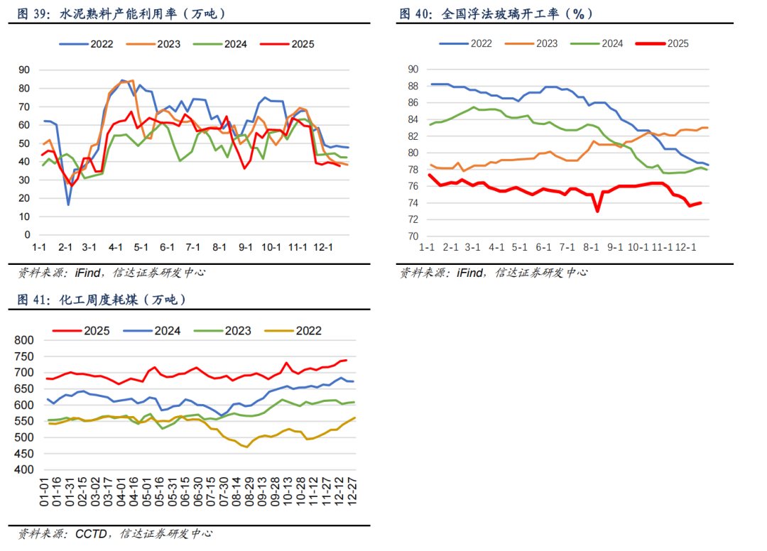 ⚫ 化工周度耗煤:截至12月19日,化工周度耗煤较上周上升2.58万吨/日,周环比增加0.35%。