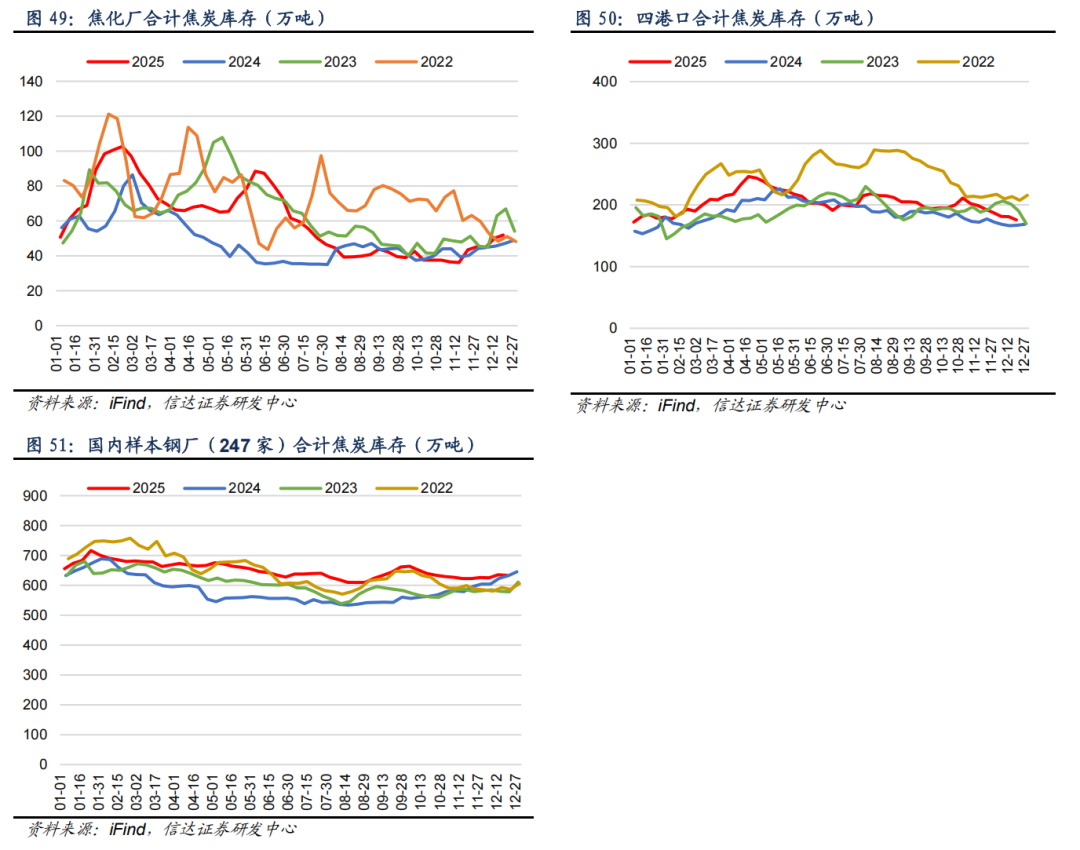 ⚫ 港口库存:截至12月19日,四港口合计焦炭库存较上周下降5.5万吨至175.7万吨,周环比下降3.06%。