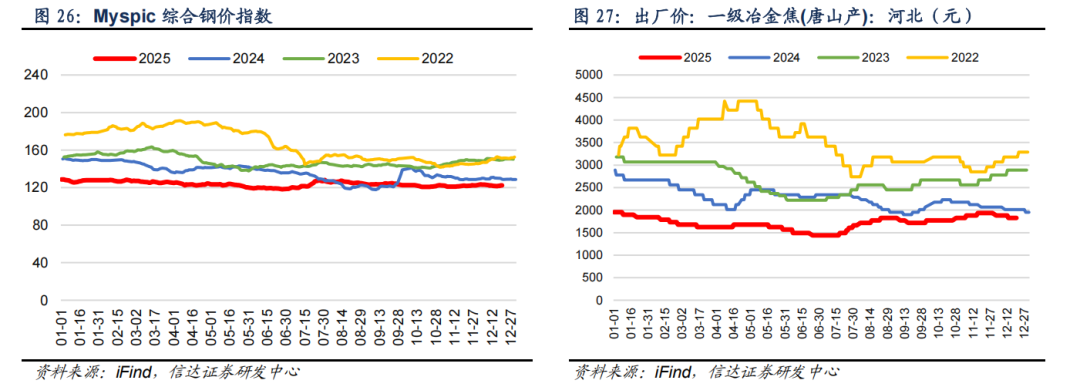 ⚫ 截至12月19日,Myspic综合钢价指数122.3点,周环比上涨0.56点。