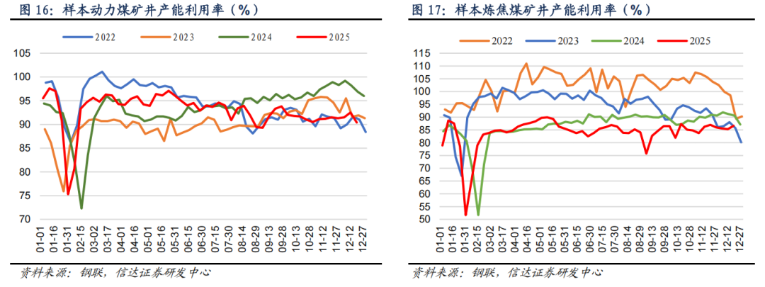 ⚫ 截至12月19日,样本炼焦煤矿井开工率为86.62%,周环比增加1.3个百分点。