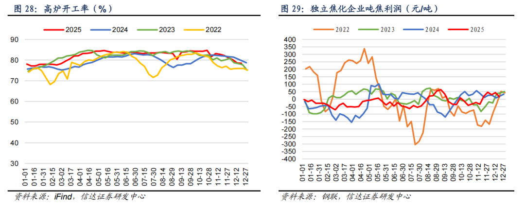 ⚫ 吨焦利润:截至12月19日,独立焦化企业吨焦平均利润为16元/吨,周环比下降28.0元/吨。