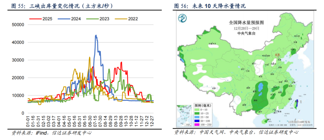 ⚫ 截至12月19日,三峡出库流量为6520立方米/秒,周环比下降7.25%。