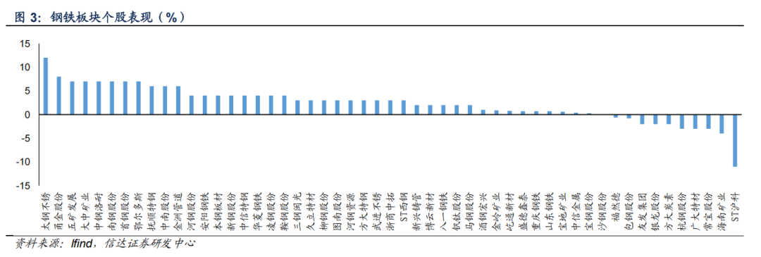 一、本周钢铁板块及个股表现:钢铁板块表现优于大盘