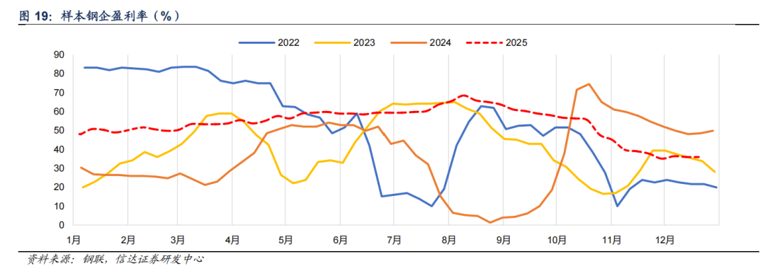 ⚫ 247家钢铁企业盈利率:截至12月19日,247家钢铁企业盈利率为35.93%,周环比持平。