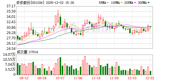 证券时报·数据宝统计,截至发稿,依依股份收盘价为30.97元,下跌1.15%,本期筹码集中以来股价累计上涨5.84%。具体到各交易日,4次上涨,4次下跌。