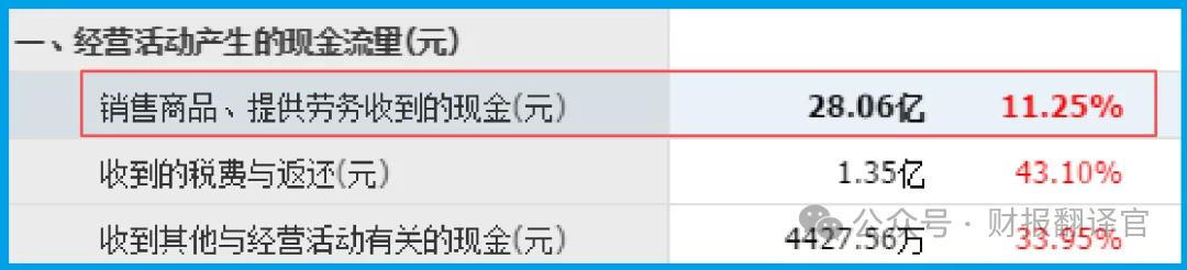 销售商品收到的现金总额 28.06亿元,同比增长11.25%,现金回款健康。