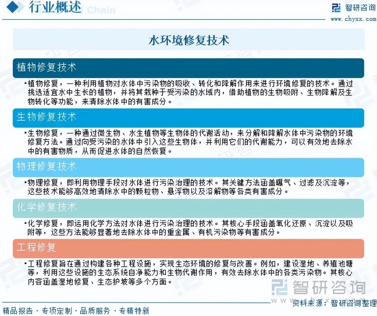 注:本文节选出自智研咨询发布的《趋势研判!2025年中国水环境修复行业政策、产业链、市场规模、重点企业及未来前景展望:加快开展水环境修复工作,保障生态环境的健康与稳定[图]》行业分析文章,如需获取行业文章全部内容,可进入智研咨询搜索查看。