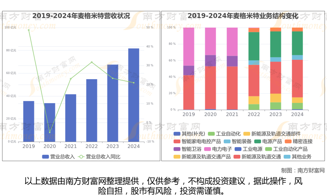 据年报数据显示(如上图),麦格米特过去一年实现营业收入81.72亿,同比增长21%,近5年复合年增长率24.73%。
