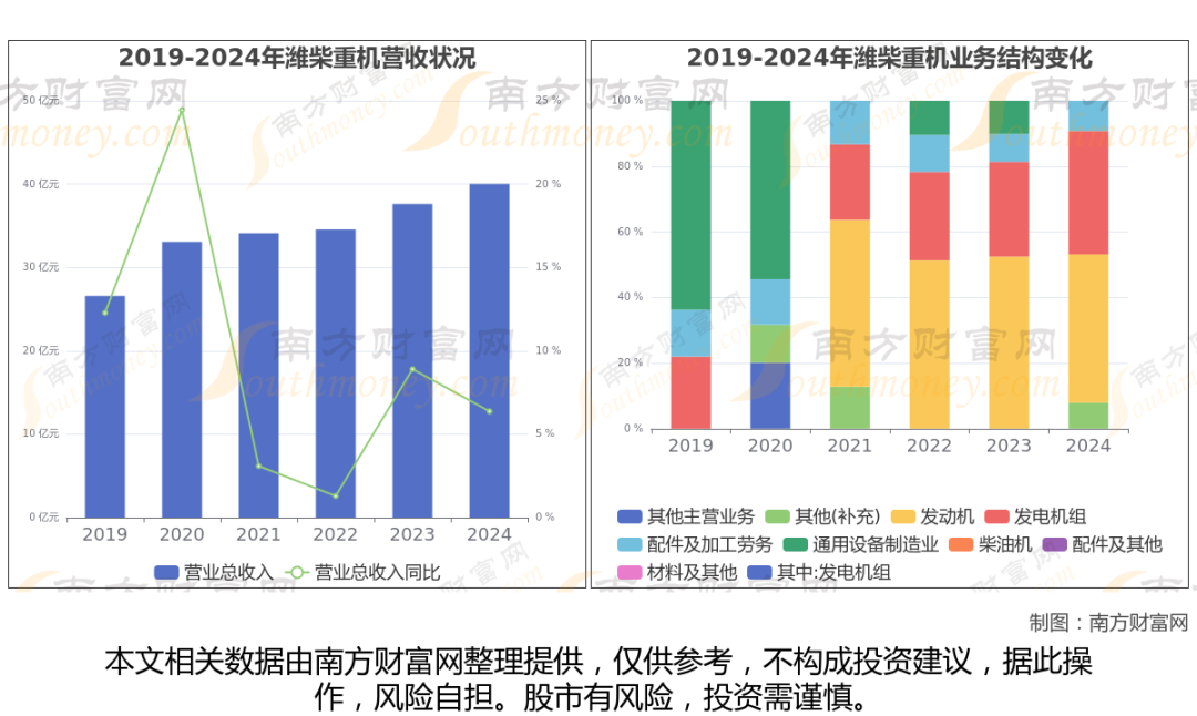 数据显示(如上图),潍柴重机2024年营业收入为40.02亿,同比增长6.37%,近5年复合年增长率4.87%。