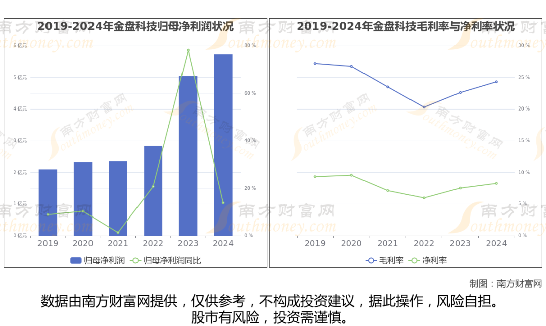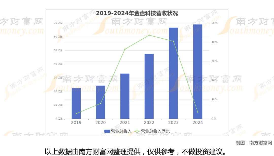数据显示(如上图),金盘科技公司2024年营业收入69.01亿,同比增长3.5%,近5年复合年增长率(CAGR)29.91%。