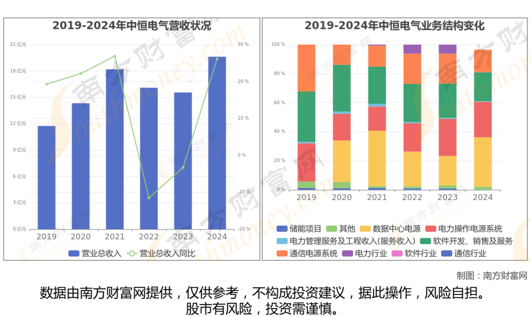 中恒电气于2010年3月5日在深圳证券交易所上市,公司主营业务为主要为数据中心、新能源车充换电、通信/电力网络等新型基础设施建设提供电气设备,为能源数字化/精细化管理、新能源开发利用提供专业技术服务。