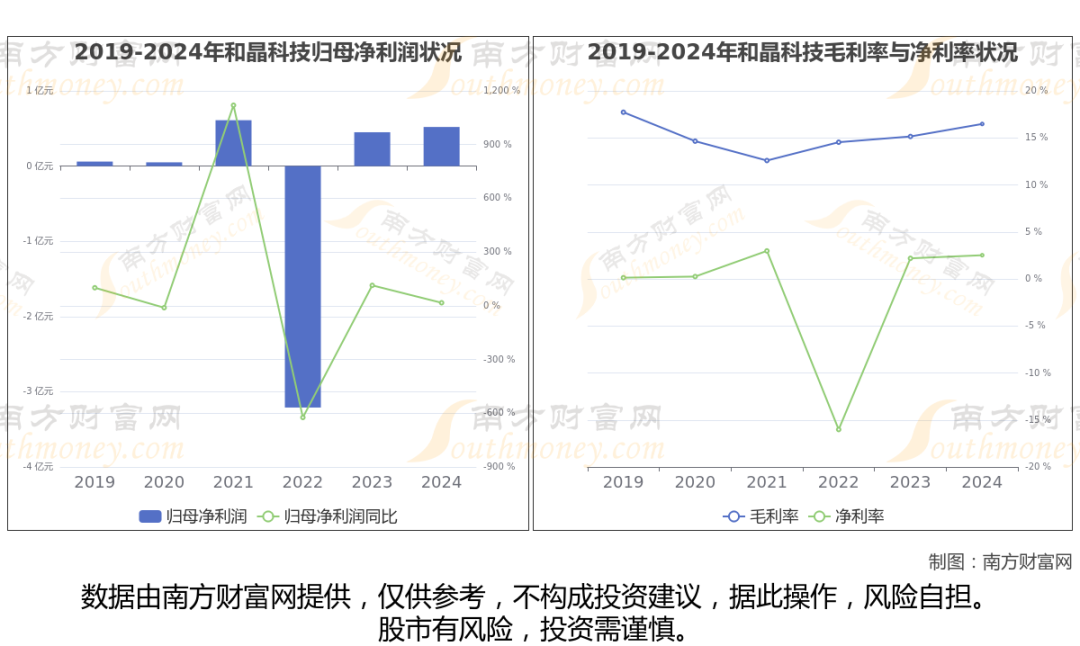 据年报数据显示(如上图),和晶科技过去一年实现营业收入20.8亿,同比增长3.73%,近5年复合年增长率5.45%。