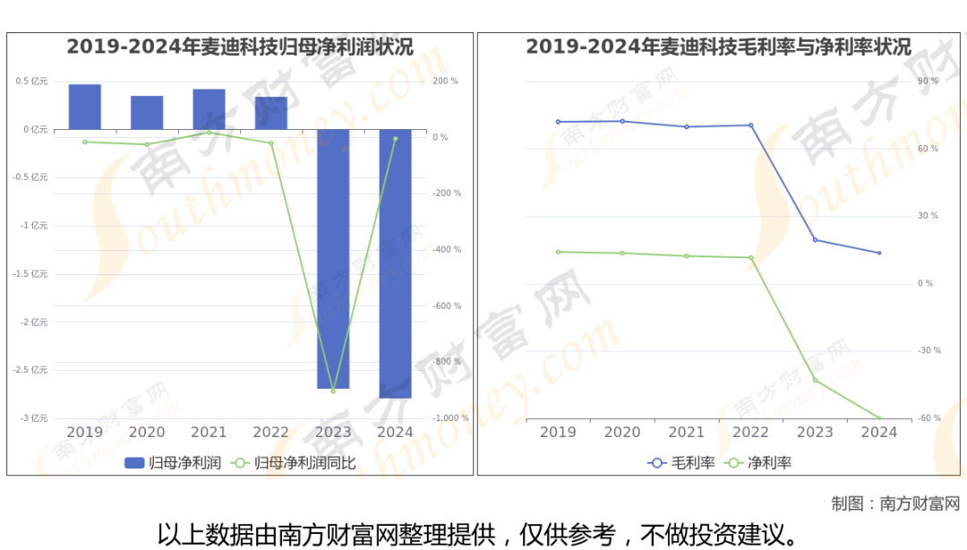 (如上图)2024年麦迪科技公司营业总收入4.64亿,同比增长-24.93%,近五年复合增长率为10.78%。
