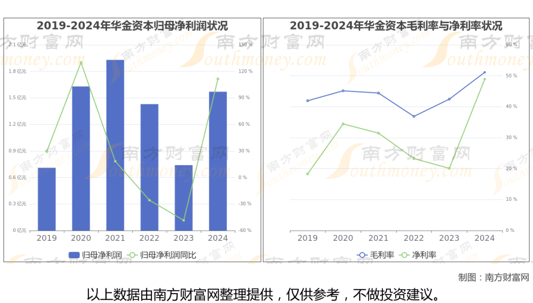 数据显示(如上图),华金资本公司2024年营业收入4.86亿,同比增长21.18%,近5年复合年增长率(CAGR)-1.45%。