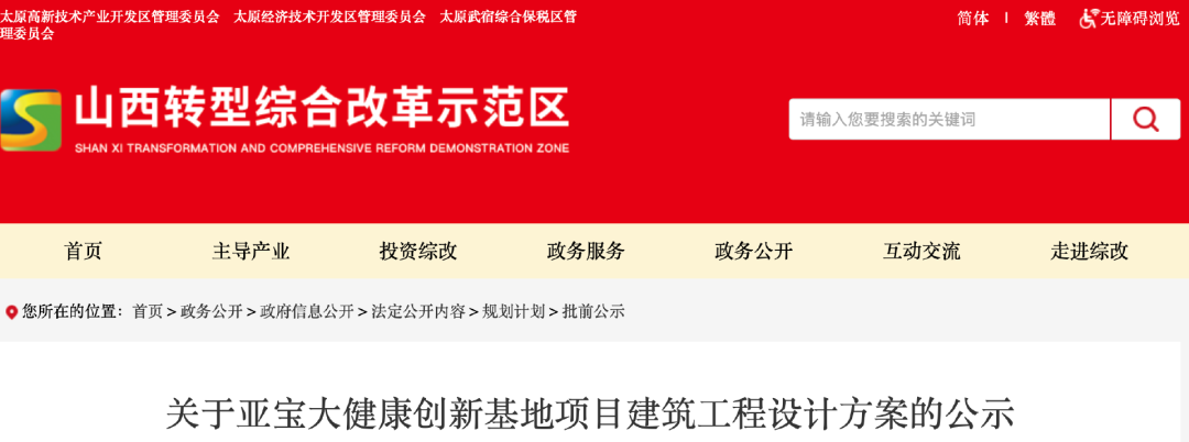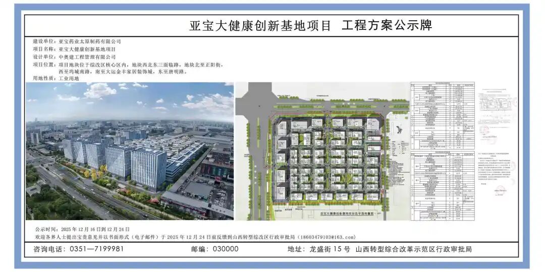 从12月17日山西转型综合改革示范区官网发布的关于亚宝大健康创新基地项目建筑工程设计方案的公示中能够找到一丝答案——该项目的建设单位正是太原制药。