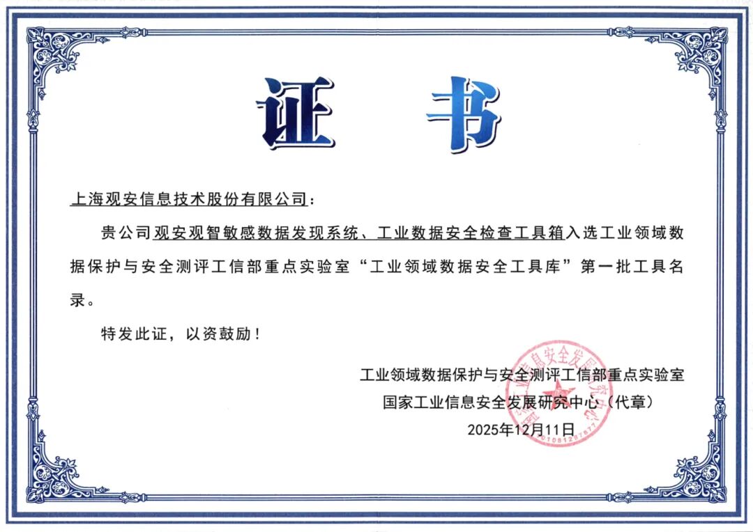 一系列荣誉的集中落地,不仅是对观安信息行业地位的有力佐证,更源于企业长期以来在核心领域的深耕细作。作为国内 “AI + 泛安全” 赛道的标杆企业,观安信息始终聚焦前沿安全技术的研发与创新应用,在威胁监测、安全评估、应急处置、攻防演练、数据安全保护等关键环节,构建起全场景、全流程的安全解决方案矩阵。凭借扎实的技术积淀与卓越的综合实力,观安信息已成为支撑上海市网络和数据安全工作的重要力量,为区域数字安全防线筑牢根基。
