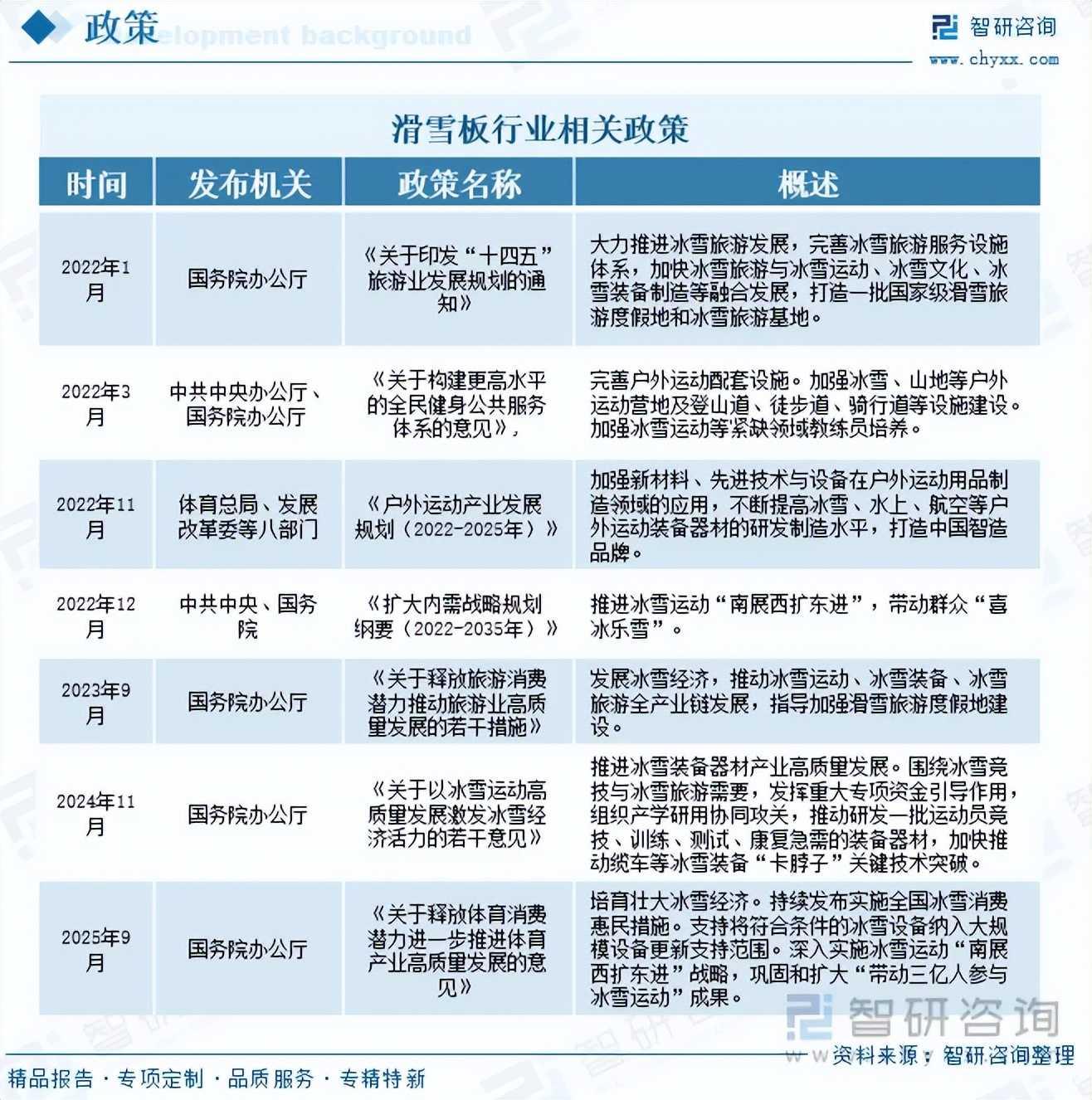 注:本文节选出自智研咨询发布的《研判2025!中国滑雪板行业政策环境、产业链、市场规模、竞争格局及发展趋势分析:政策与需求双轮驱动,滑雪板市场规模持续上涨[图]》行业分析文章,如需获取行业文章全部内容,可进入智研咨询搜索查看。