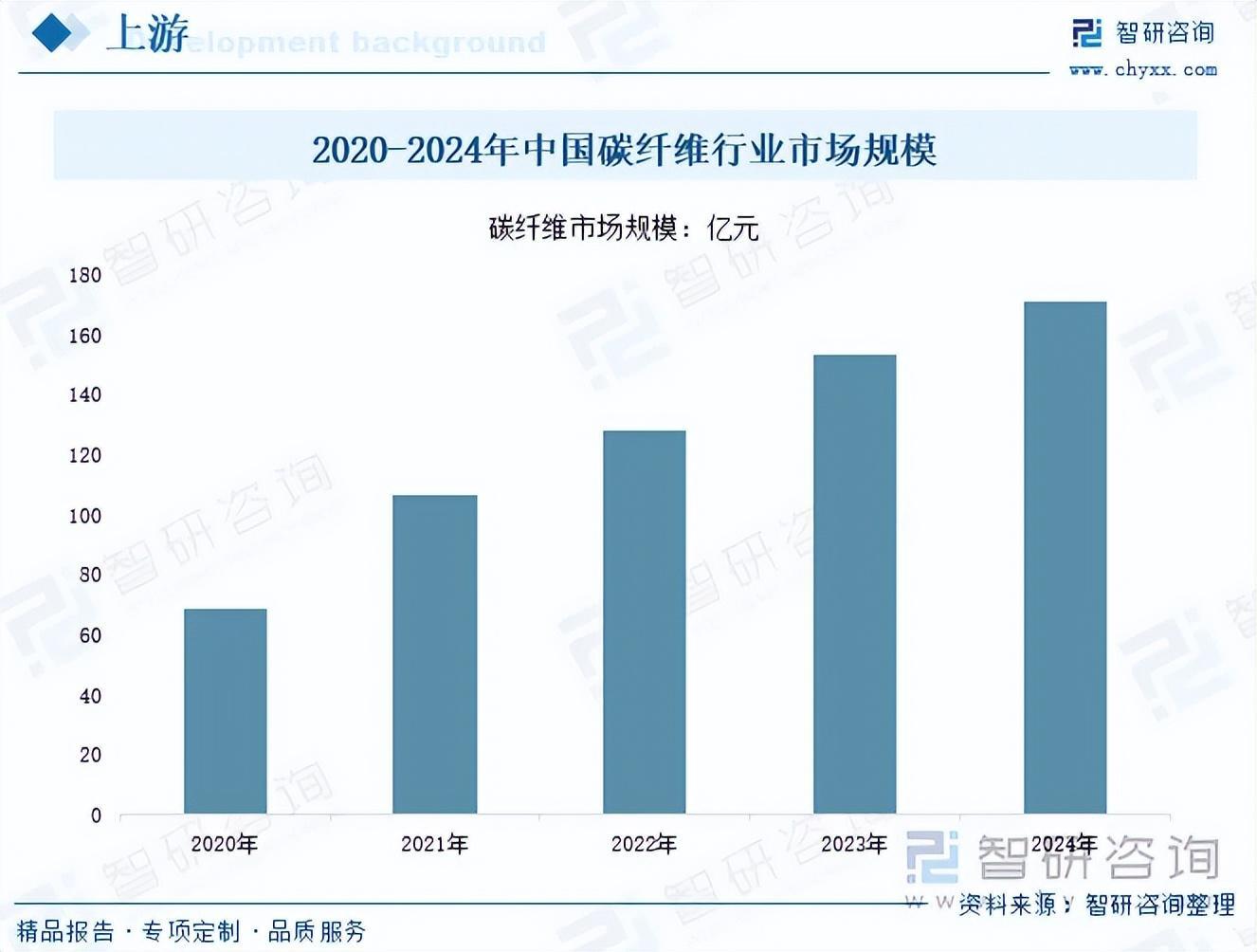 碳纤维是滑雪板的一种重要材料,尤其在高端滑雪板中应用广泛。它因其轻质、高强度、耐高低温、耐腐蚀和耐疲劳等优异特性,被誉为“新材料之王”,非常适合用于制造高性能滑雪板。随着科技的不断进步,碳纤维材料在滑雪板的应用将不断深入。近年来,我国碳纤维行业市场规模呈现逐年攀升趋势,从2020年的68.8亿元增长至2024年的171.4亿元。这主要得益于碳纤维在航空航天、汽车、风电等领域的应用不断拓展,同时技术进步推动成本降低,以及政策支持等因素共同作用推动了碳纤维行业市场规模的扩大。预计未来随着我国对轻量化、高强度材料的需求增长,碳纤维行业市场规模将持续上升,这也将进一步带动滑雪板市场的发展。