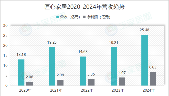 然而,增长并非普惠,企业间的表现也出现显著结构性分化。匠心家居是其中最为突出的成长案例,营收从2020年的13.18亿元稳步攀升至2024年的25.48亿元,期间多数年份增速超过30%,且净利润持续增长,2024年净利润同比大增67.64%,显示出强劲的内生增长能力和优异的盈利质量。匠心家居的突出表现,或许得益于其对智能家居、功能沙发等细分赛道的聚焦,以及海外市场的稳健布局,验证了“精准定位+高效运营”模式在存量竞争下的强大生命力。