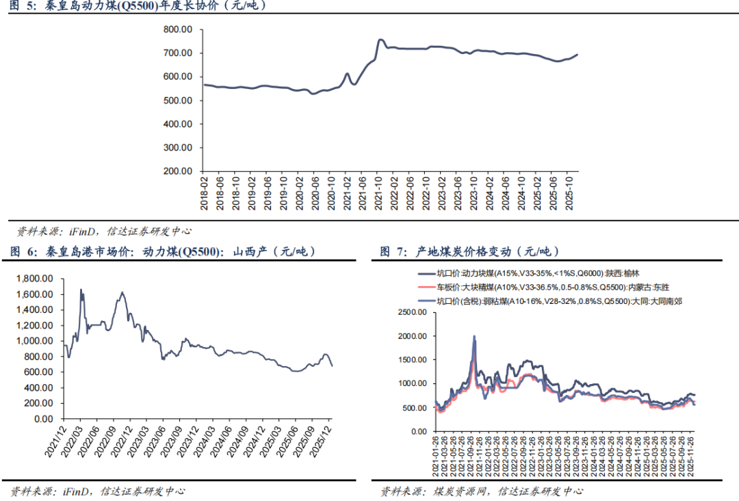 ●长协煤价格:12月,秦皇岛港动力煤(Q5500)年度长协价为694元/吨,月环比上涨10元/吨。
