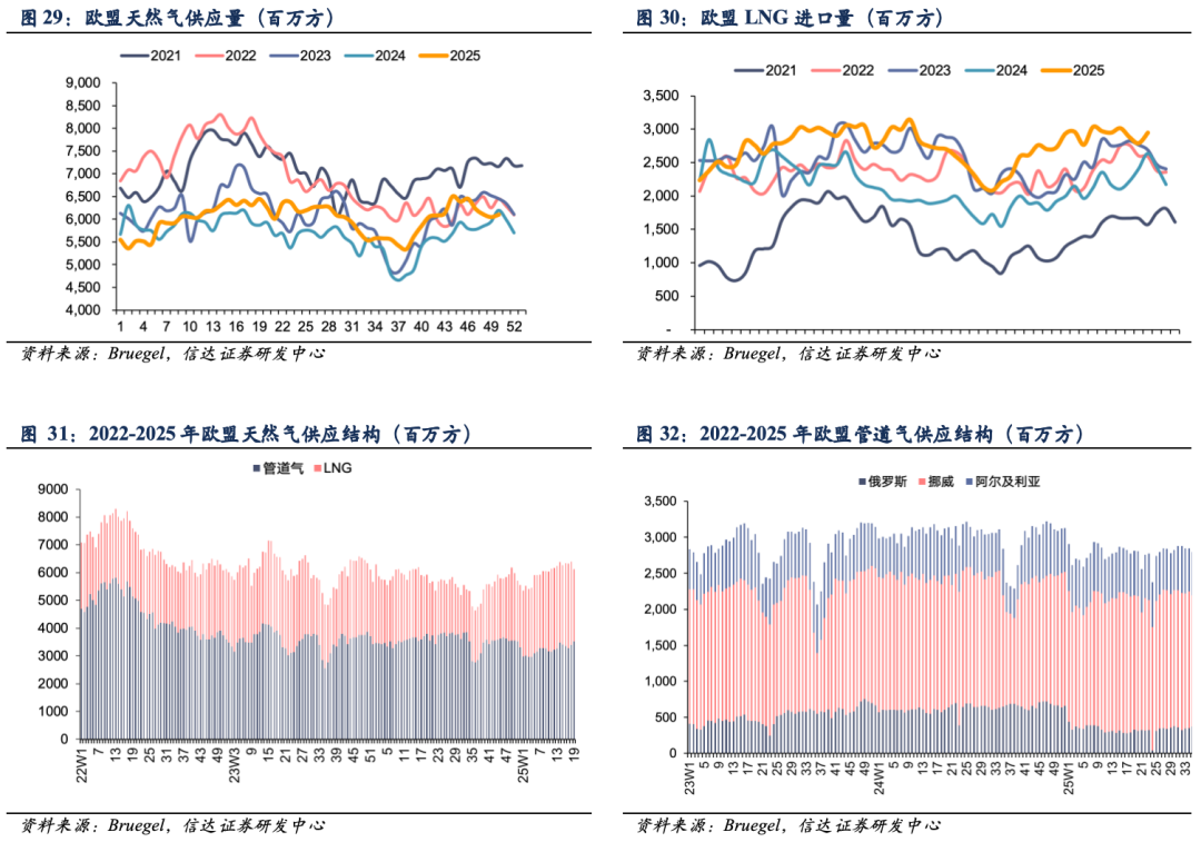 ● 供给:欧盟天然气供应量周环比上升