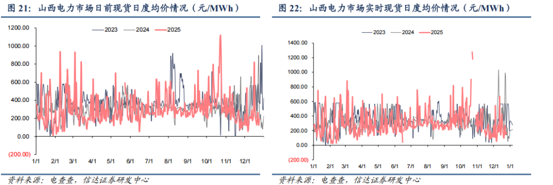 ● 山西实时现货市场:截至12月26日,山西电力实时现货市场的周度均价为174.65元/MWh,周环比下降25.51%,周同比下降61.2%。
