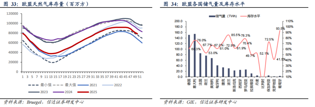 ● 库存:欧盟天然气库存周环比下降