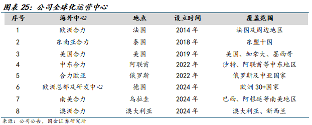 公司积极谋划国际化产业布局,持续开拓海外市场。海外市场空间广阔,公司积极谋划国际化产业布局。公司已构建了"1个中国总部+N个海外中心+X个全球团队"的全球化布局,形成"全球研发+本地制造+区域服务"一体化运营模式,同时投资设立首个海外制造工厂,进一步优化国际化布局,完善国际化运营体系。