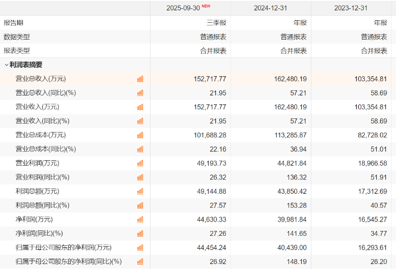 2023年至2024年以及今年前三季度,诺泰生物的营业收入分别为10.34亿元、16.25亿元和15.27亿元,同期的归母净利润分别为1.63亿元、4.04亿元和4.4亿元。