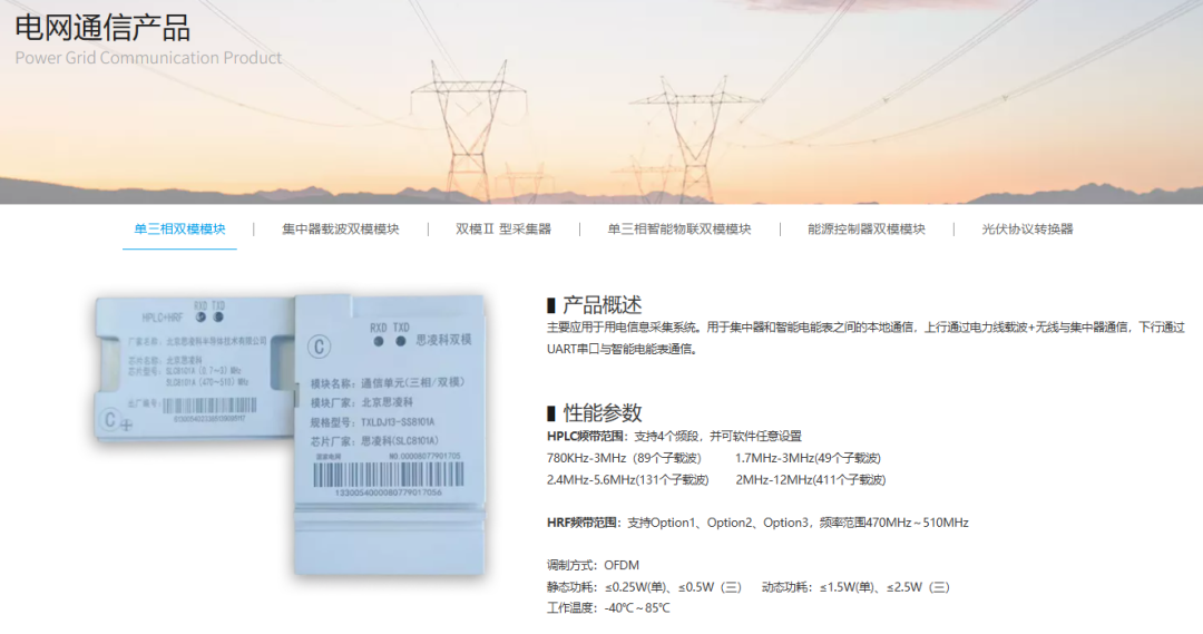 该公司的核心产品线围绕智能电网的需求构建,主要包括电网高速电力线载波(HPLC)通信芯片及模块,以及电网高速双模(HDC)通信芯片及模块。