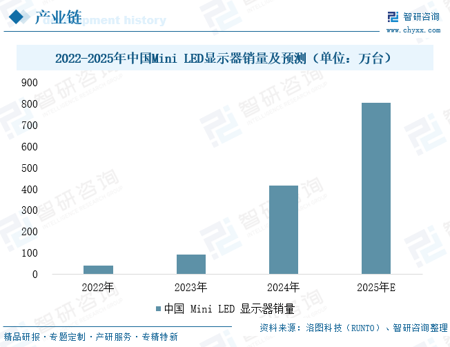 Mini/Micro-LED作为下一代显示技术的核心方向,已成为推动玻璃基板市场增长的关键动力,其背光与直显两大技术路径均对玻璃基板形成强劲需求。在背光应用中,玻璃基板凭借其低热膨胀系数、优异导热性以及可支持10μm以下高精度线路等优势,正逐步取代传统PCB基板,尤其在2000分区以上的高端显示方案中表现突出,能够有效抑制光晕、提升对比度,使LCD产品在视觉上逼近OLED水准,同时避免烧屏风险。目前,玻璃基板背光技术正加速渗透至高端显示器、电竞笔记本、车载显示等10–30英寸的中尺寸高端场景。近年来,行业市场增长态势显著。据洛图科技(RUNTO)数据显示,2024年中国Mini LED电视销量已达416万台,预计2025年将突破800万台,实现近乎翻倍的增长,进一步印证了该技术路线的商业化潜力与下游拉动力。