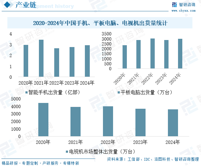 在传统应用市场,尽管电视机出货量从2020年的4440万台回落至2024年的3596万台,整体需求承压,但大尺寸化与高端化趋势(如Mini LED背光技术的普及)仍为高世代玻璃基板带来可观的结构性机会。与此同时,智能手机市场在经历波动后,于2024年回升至2.94亿部,平板电脑也稳步增长至近3000万台规模,共同构筑了中小尺寸玻璃基板需求的稳定基本盘。整体来看,下游市场正逐步由“以量取胜”转向“以质突围”,不断推动玻璃基板向更高性能、更优成本的方向迭代演进。