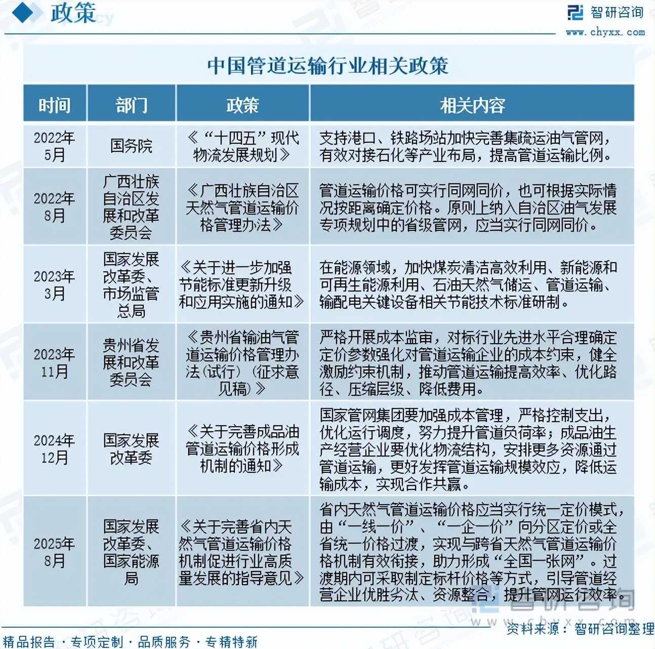 注:本文节选出自智研咨询发布的《研判2025!中国管道运输行业发展历程、政策、市场规模、竞争格局及发展前景展望:政策支持与能源需求增长,推动管道运输规模达2.98万亿元[图]》行业分析文章,如需获取行业文章全部内容,可进入智研咨询搜索查看。