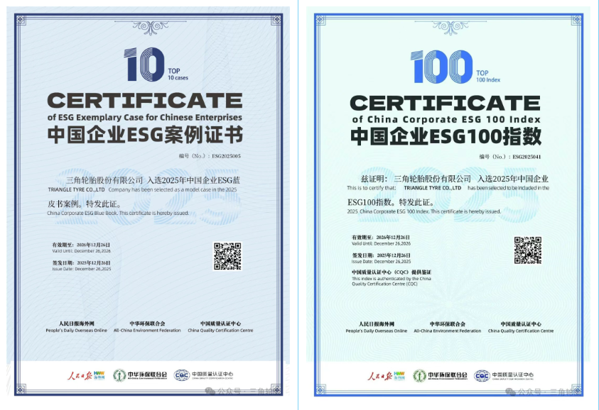 三角轮胎凭借突出的实践经验,入选“2025中国企业ESG蓝皮书案例”。