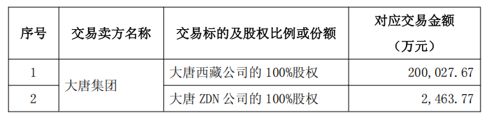 公告指出,公司拟以现金方式收购大唐集团持有的大唐西藏能源开发有限公司、中国大唐集团 ZDN 清洁能源开发有限公司两家公司100%股权,交易总金额为20.25亿元。