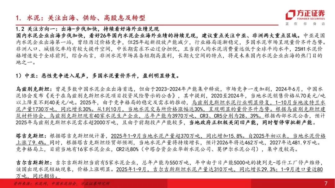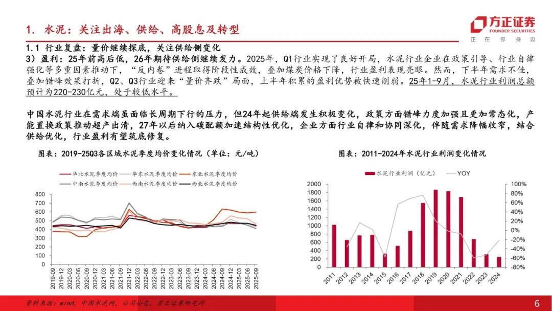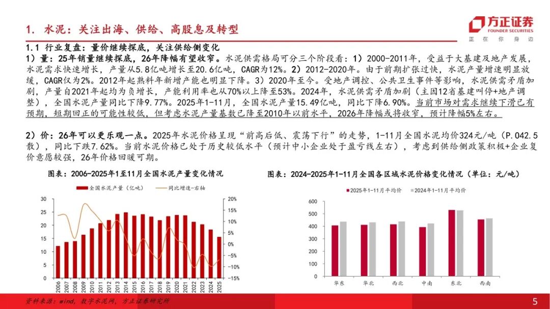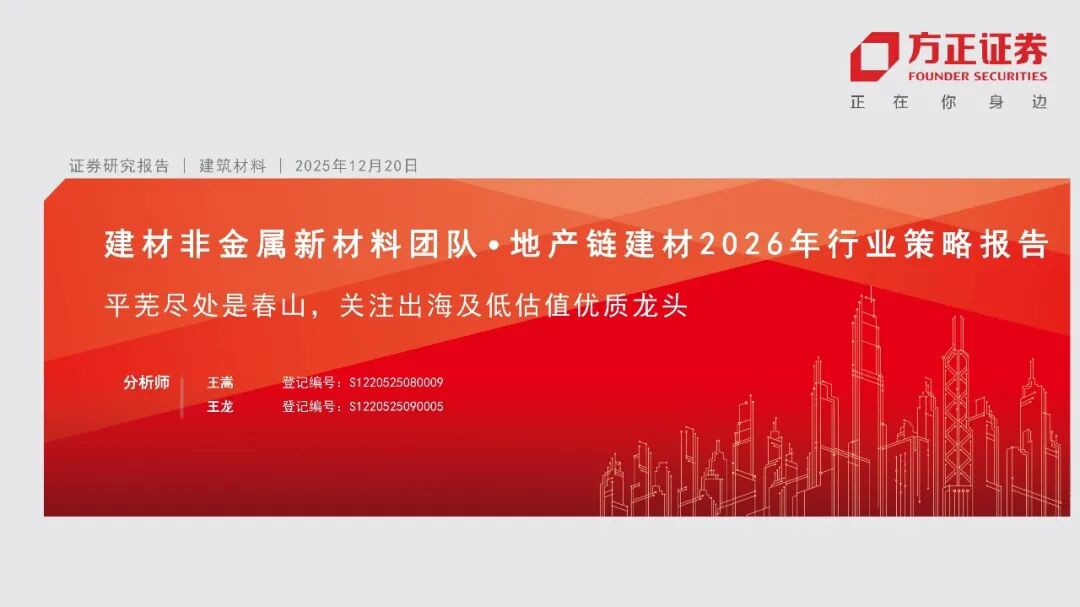 本文来自方正证券研究所于2025年12月23日发布的报告《建材2026年策略报告:平芜尽处是春山,关注出海及低估值优质龙头》,欲了解具体内容,请阅读报告原文。