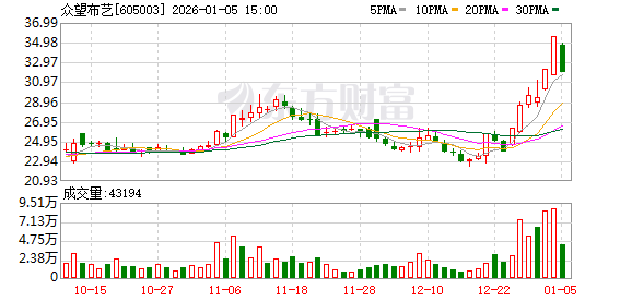 众望布艺(605003)今日跌停,全天换手率3.93%,成交额1.42亿元,振幅9.13%。龙虎榜数据显示,营业部席位合计净卖出1.42万元。